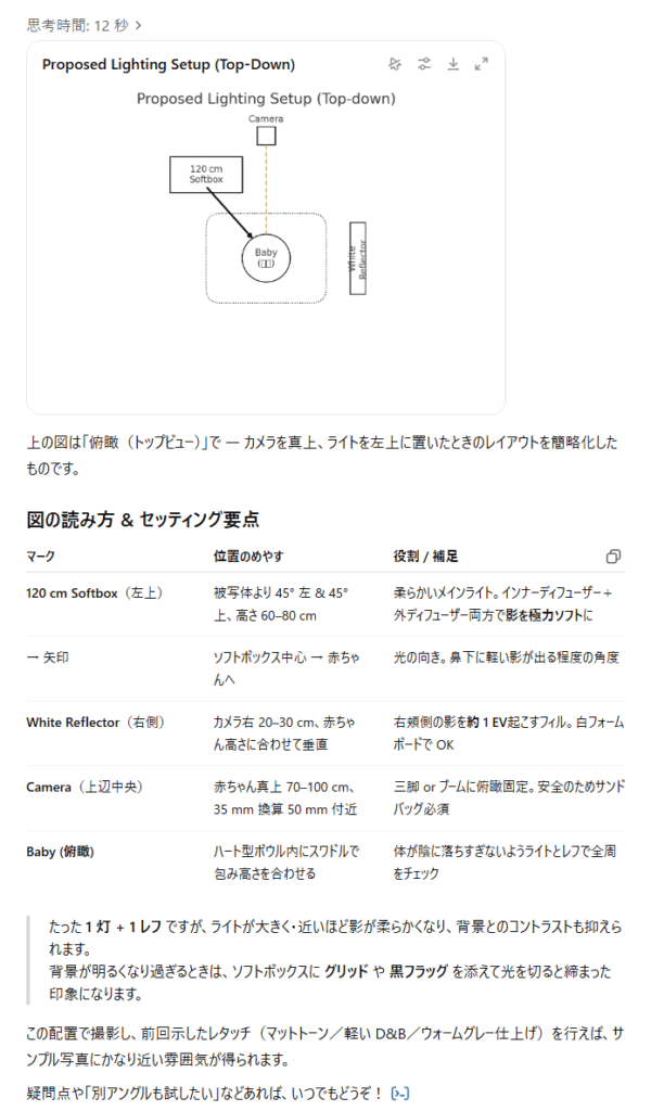 ChatGPT、写真1枚見せたらここまでライティングの構造を紹介してくれるのをやばすぎだろ。