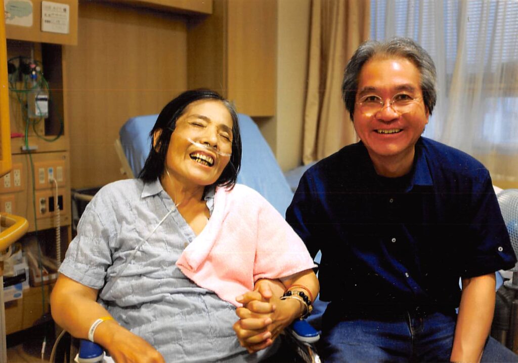 父との結婚に母の実家は反対していたと聞く。その結果、母と実家との間には絶縁状態が生まれた。さらに、母の精神病が原因で、彼女の兄弟たちとも30年以上疎遠になっていた。しかし、母が亡くなる5日前、病室には母の弟が訪れた。長い間のわだかまりがあったかもしれないが、二人は再会の瞬間、互いを抱きしめ合い、感謝の気持ちを共有していた。この写真は、そんな貴重な瞬間を捉えたものだ。そして数日後、母は静かにこの世を去った。