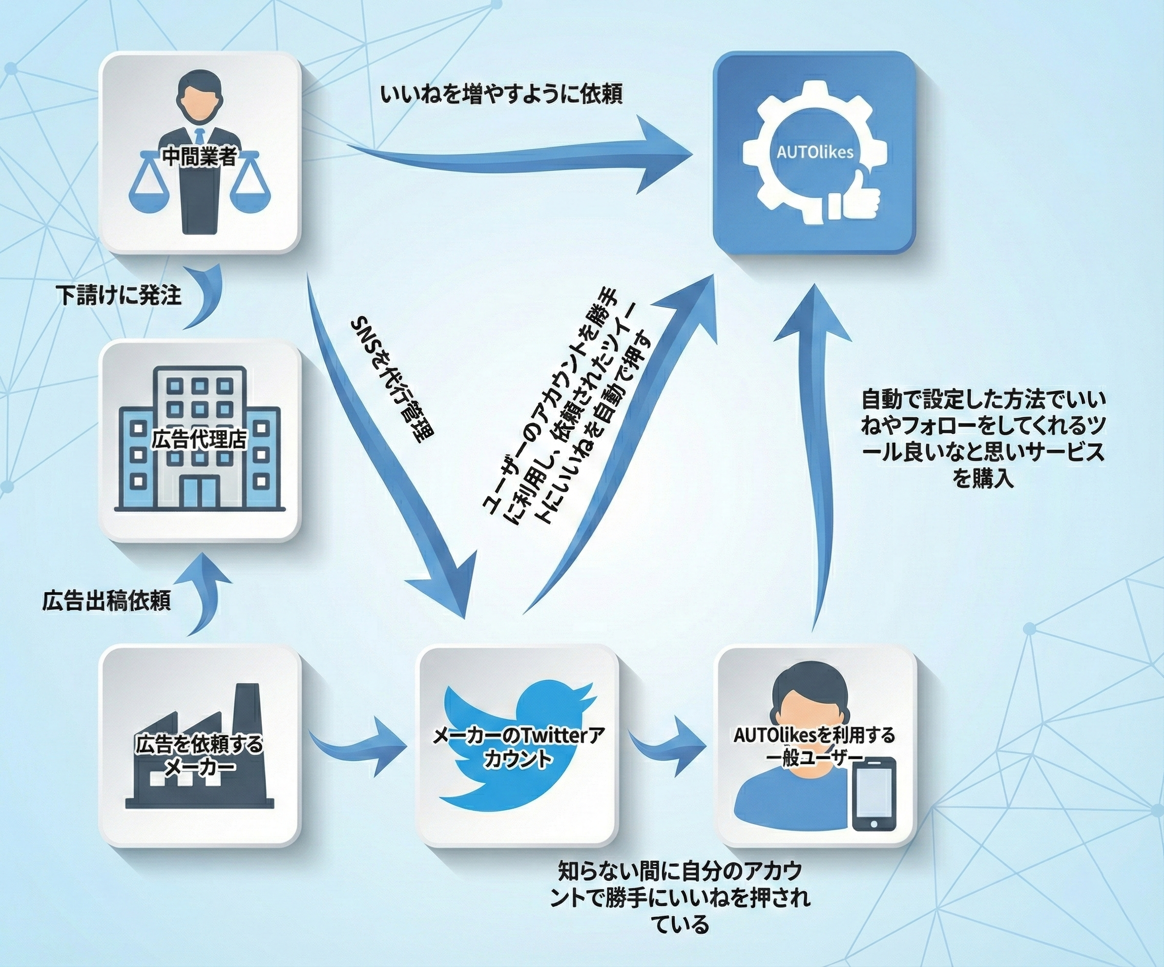 簡単に言うと自動でTwitter やInstagramでいいね押したり、フォローすることができるツールを提供しているサービスのことです。