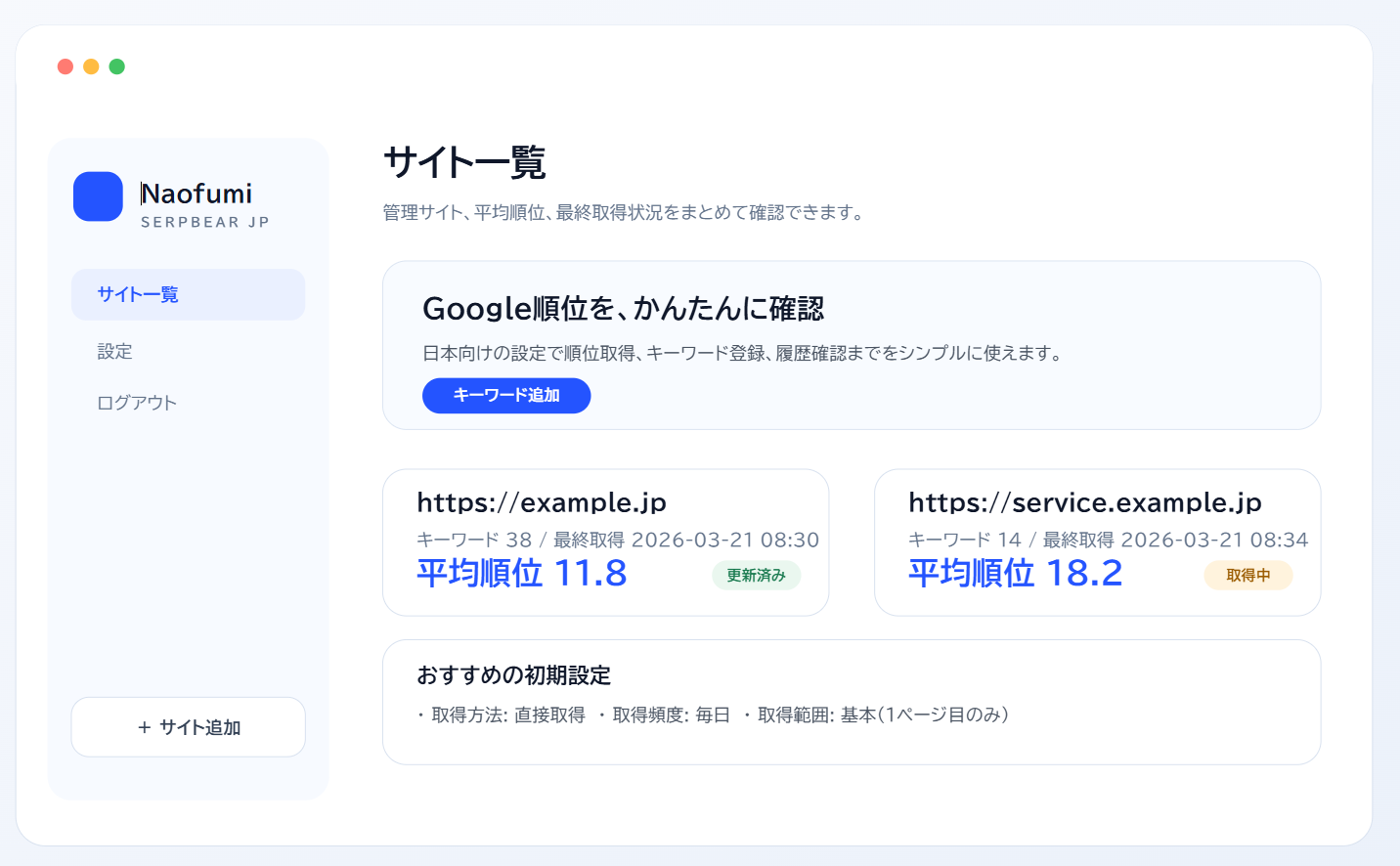 そういう用途向けに、日本向け順位チェックツール「SerpBear JP」を公開しました。
