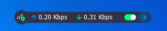 タスクバーにはこのように表示され格納されています、またタスクバー以外の部分でも表示されるようになっておりミニバーでかなり小さく表示されているのでこれを便利に使えます。速度などが表示されているので使っているサーバーが安定しているかどうかの判断基準にもなりそうです。